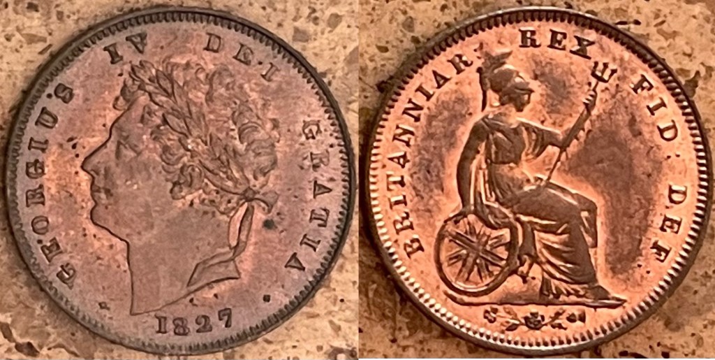 - 1827 George IV Farthing (S3825) UNC $365
