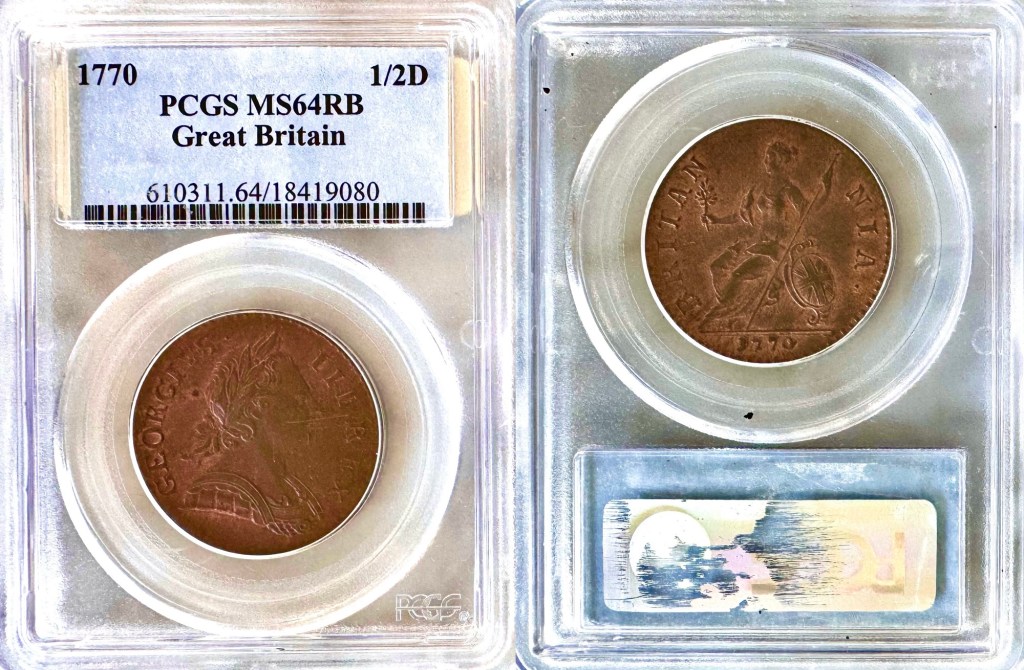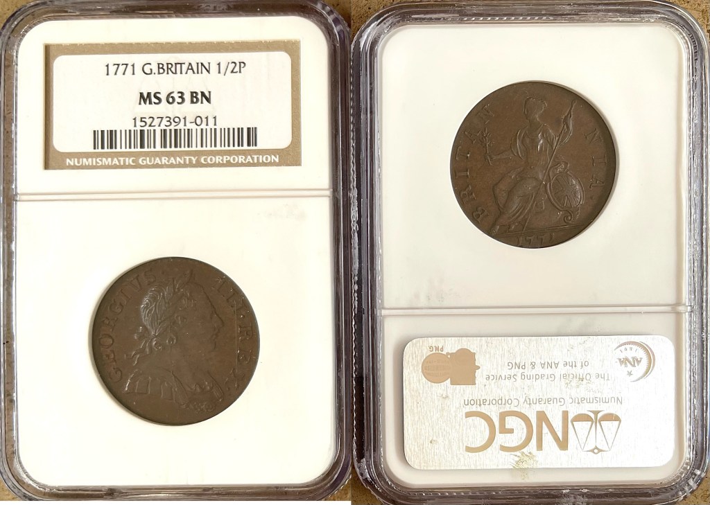 - 1771 George III Halfpenny (S3774) aUNC/EF $755