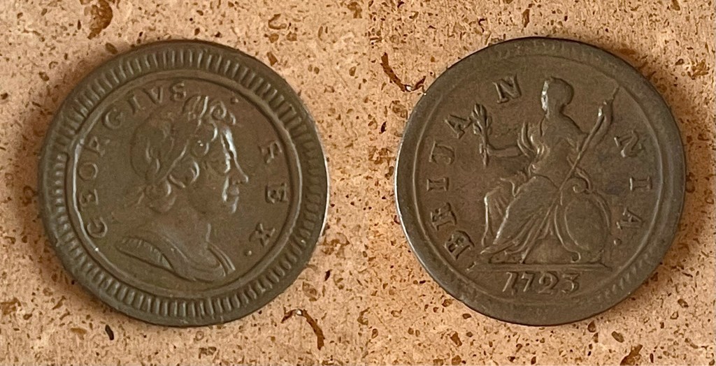 - 1723 George I Halfpenny (S3660) aVF $185