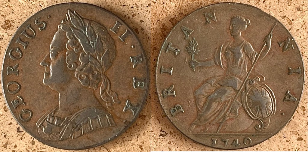 - 1752 George II Halfpenny (S3719) gVF $300