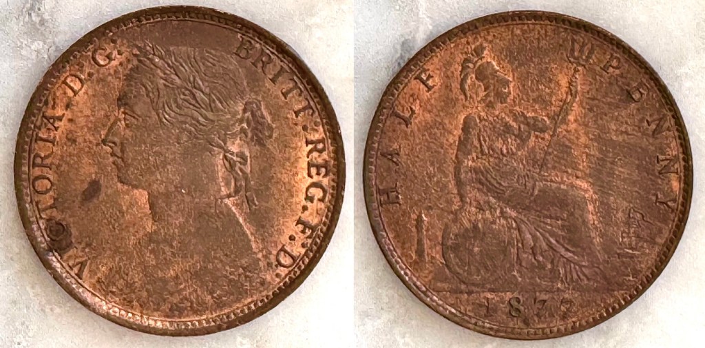 - 1875 Victoria Halfpenny (S3956) aUNC $360