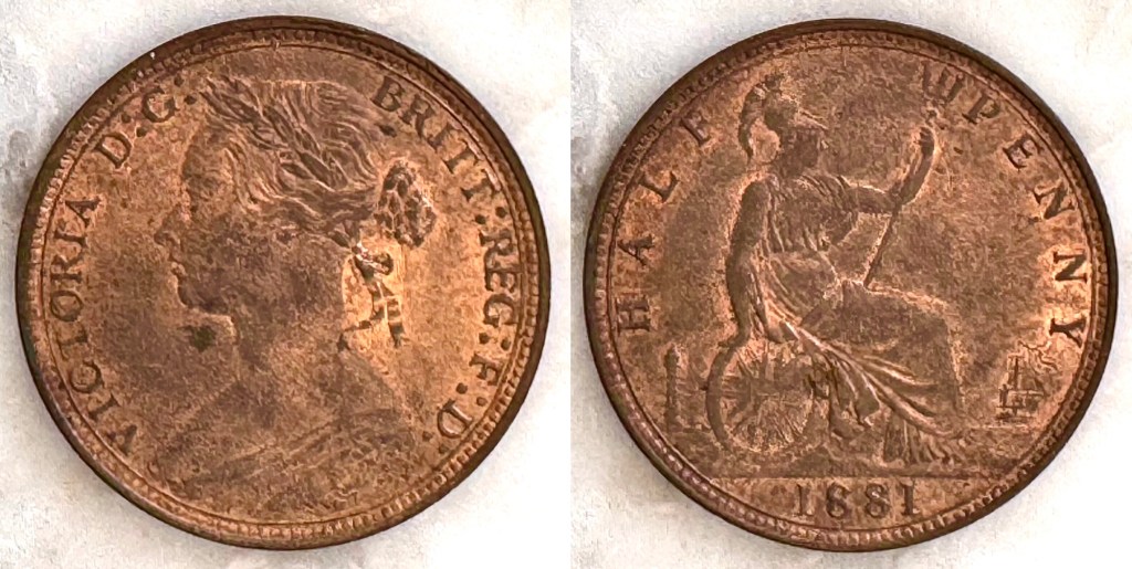 - 1884 Victoria Halfpenny (S3956) UNC $360