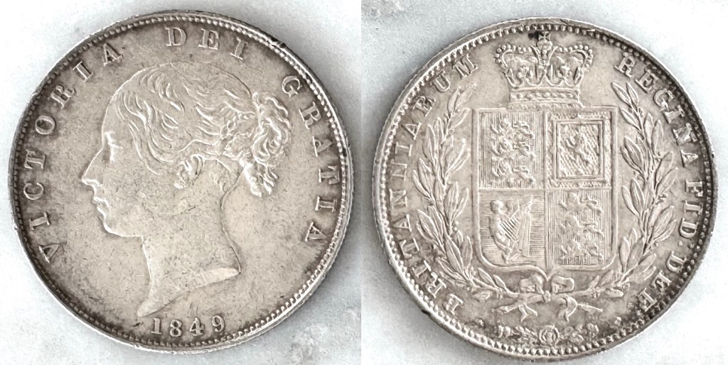 - 1849 Victoria Halfcrown (S3888) small 8 over big 8 variety not listed aEF $1,205