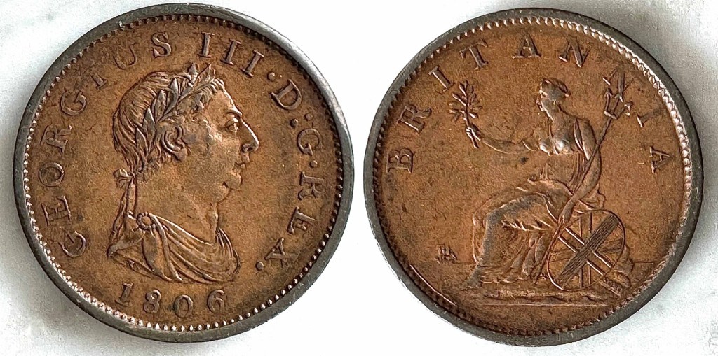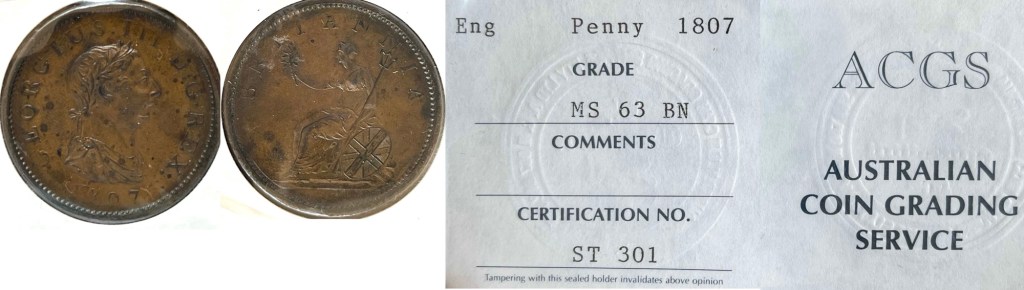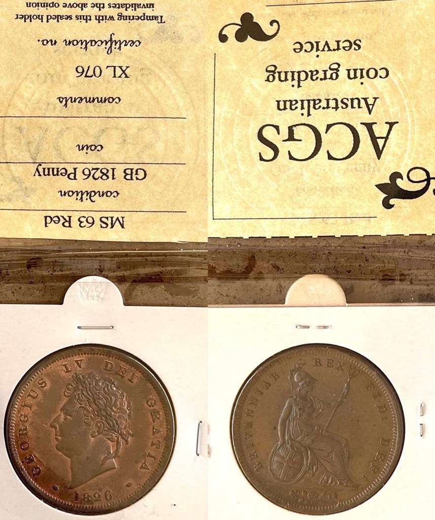 - 1825 George III Penny (S3823) PCGS graded AU55 $1,225