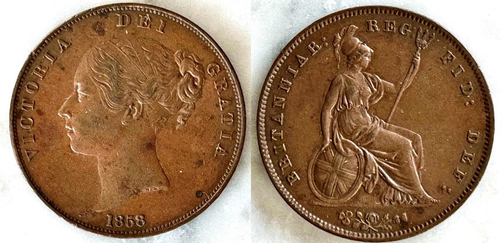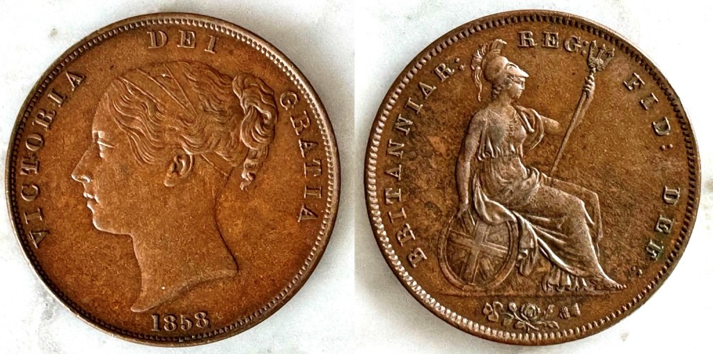 - 1857 Victoria Penny (S3948) Plain Trident, EF $240