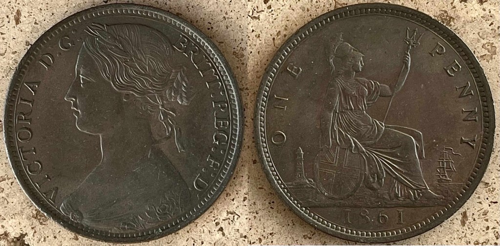- 1861 Victoria bun Penny (S3954) type 6G gVF $80