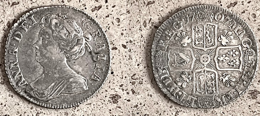 - 1705 Anne Sixpence (S3591) gF/F $180